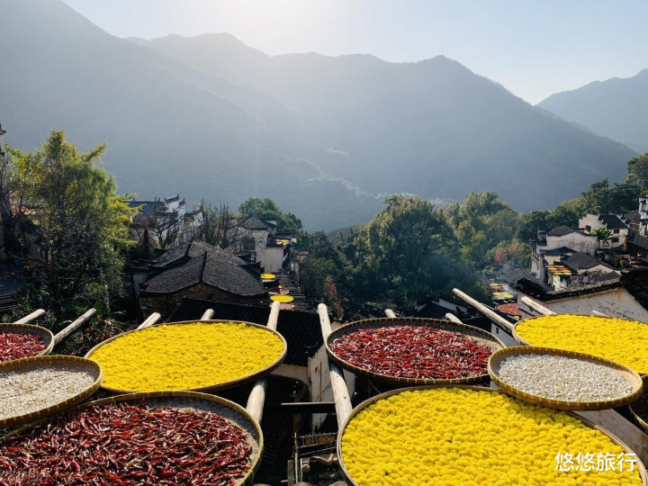 江南古村的万般和韵味,在这里被展现得长篇大论。篁岭的晒秋握续到春节后,屋檐上的晒秋盘五颜六色,浩大有致的摆设。
