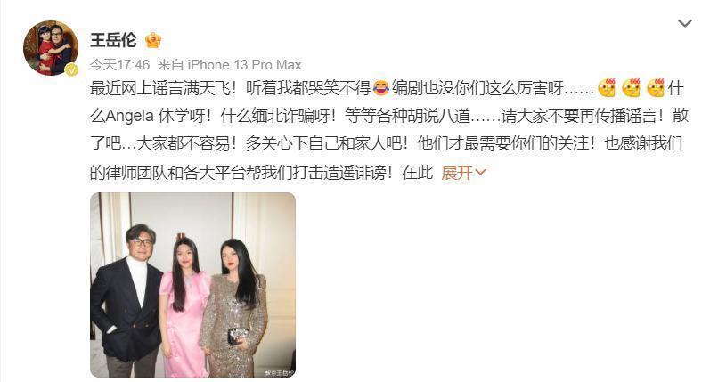 王岳伦在文中口吻略带无奈又不失坚强,原文说起:“最近网上假话满天飞!听着我都哭笑不得,编剧也没你们这样利害呀……什么Angela休学呀!什么缅北诱拐呀!等等各式瞎掰八说念……请全球不要再传播假话!散了吧…全球都阻扰易!多关怀下我方和家东说念主吧!他们才最需要你们的关注!” 同期,他相等感谢讼师团队及各大平台在打击评论降低方面提供的解救,并借机奉上新春祝贺,祝愿全球“马年大吉、欢快如意”。