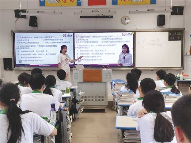 巴蜀云校物理直播课堂,远端教师周曼飞进行双师协同造就