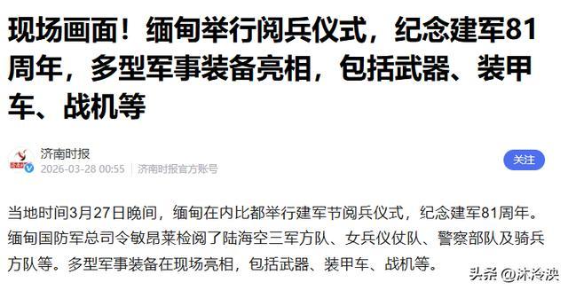 3月27日晚间缅甸皆门内比皆举行了驰念国防军建军81周年的阅兵典礼,与往年比较,这次阅兵不仅规格更高、亮相装备更全,还避让着了了的政治信号,成为缅甸军政转型的进攻序幕。