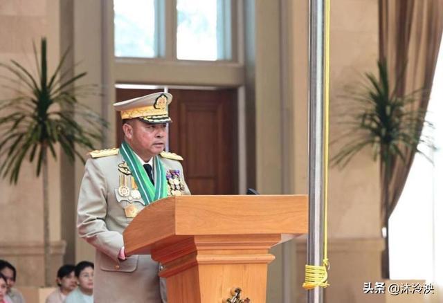 缅甸国防军总司令敏昂莱身着军装阅兵全场,这亦然他以军方最高统辖身份终末一次公开主理如斯高规格的要紧行为。